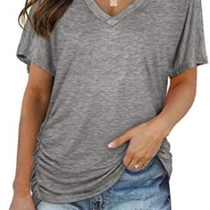 WIHOLL Womens Summer Tops Short Sleeve V Neck Dolman Shirts Loose Fit Tunic Tops