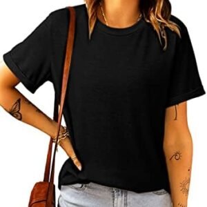 WNEEDU Womens T Shirts Short Sleeve Crewneck Loose Summer Tees Basic Tops