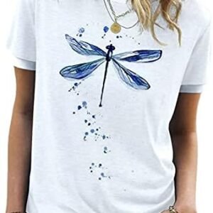 Women’s Graphic Tees Casual Summer Funny Dragonfly Printed Short Sleeve Cute T Shirts Tops
