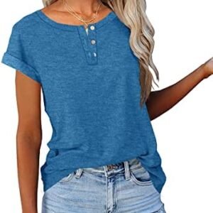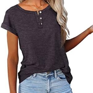 Women’s Casual Short Sleeve T-Shirts Crew Neck Tunic Basic Summer Tops Henry Shirt