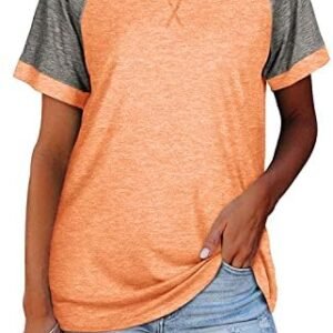 Women’s Raglan Short Sleeve Crewneck T-Shirt Color Block Tunic Tshirt Casual Loose Blouses Tops