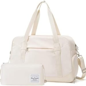 Women’s Travel Duffel Bag with Toiletry Bag, Sports Gym Bag Weekendeer Carry-on Tote with Shoe Compartment and Wet Pocket, Yoga Bag Fit 15.6inch Laptop (APRICOT WHITE, 18-inch)