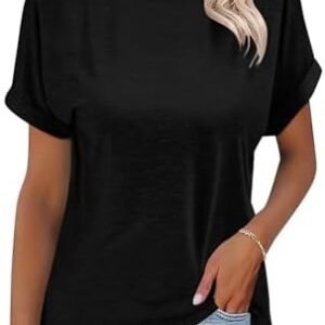 Women’s T-Shirts Rolled Short Sleeve Shirts Crewneck Summer Tops Solid Loose Casual Tees Shirts