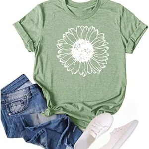 Women’s Summer Sunflower T Shirt Cute Flower Graphic Loose Tees Crew Neck Short Sleeve Casual Tops