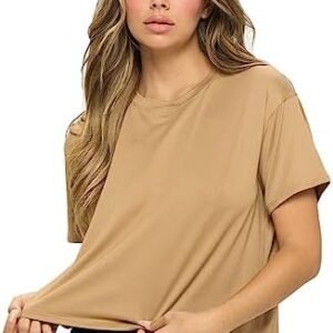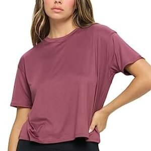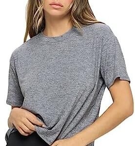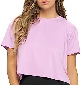 Women’s Crop Top – Short Sleeve Soft Boxy Crewneck Casual Active Workout Yoga Running Cropped Tee T Shirts