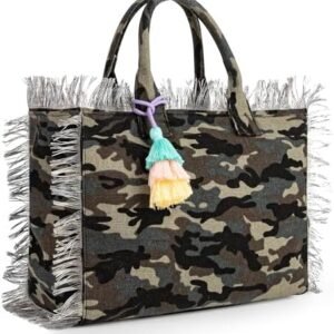 Canvas Tote Bag for Women with Tassel, Shoulder Bag Top Handle handbag with Zipper Closure for Work Travel Beach Gym Shopping