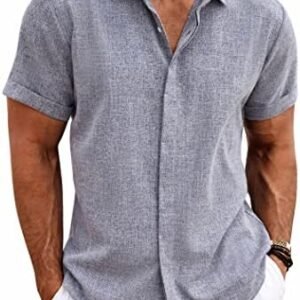 COOFANDY Men’s Linen Shirts Short Sleeve Casual Shirts Button Down Shirt for Men Beach Summer Wedding Shirt