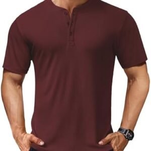 COOFANDY Men’s Short Sleeve Henley Shirts Stretch Ribbed T-Shirts Fashion Casual Basic Tops