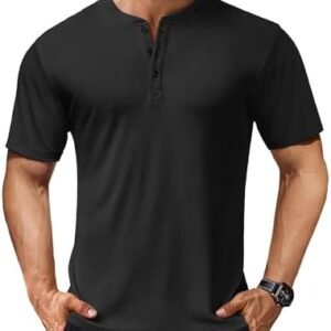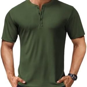 COOFANDY Men’s Henley Shirts Short Sleeve Casual Basic Tee Summer Button Henley Soild T Shirts