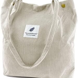 Corduroy Tote Bag for Women Canvas Shoulder Cord Purse with Inner Pocket