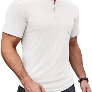 COOFANDY Mens Henley Shirts Short Sleeve Tshirt Basic Button Tees Summer Ribbed Pocket T Shirt Casual Stretch Tops