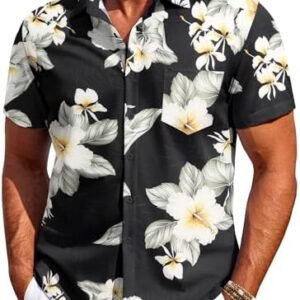 COOFANDY Mens Hawaiian Shirt Short Sleeve Button Down Shirt Tropical Summer Beach Shirt