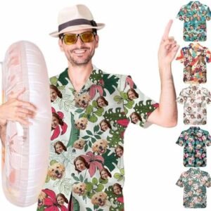 Custom Funny Hawaiian Shirt with Face for Men Personalized Dog Dad Photo Floral Fruit Summer Hawaiian Beach Tshirts