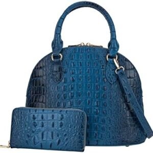 Dome Shape Satchel With Wallet Women’s Vegan Leather Crocodile-Embossed Pattern With Top Handle Tote Handbags Satchel Set