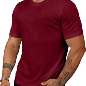 Dokotoo Men Men’s Ribbed Shirt Short Sleeve Slim Fit Muscle T Shirts Stretch Bodybuilding Workout Ribbed Knit Tee