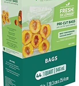 FoodSaver Vacuum Sealer Bags for Airtight Food Storage and Sous Vide, 1 Quart Precut Bags (44 Count)