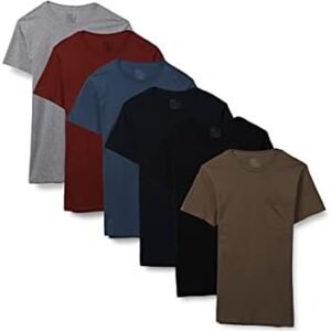 Fruit of the Loom Men’s Eversoft Cotton Short Sleeve Pocket T-Shirts, Breathable & Tag Free