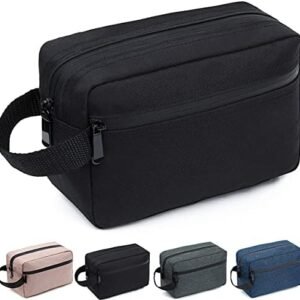 FUNSEED Travel Toiletry Bag for Women and Men, Water-resistant Shaving Bag for Toiletries Accessories, Foldable Storage Bags with Divider and Handle for Cosmetics Brushes Tools (Black)