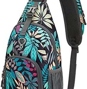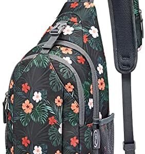 G4Free Sling Bag RFID Blocking Sling Backpack Crossbody Chest Bag Daypack for Hiking Travel(Black Base Floral)