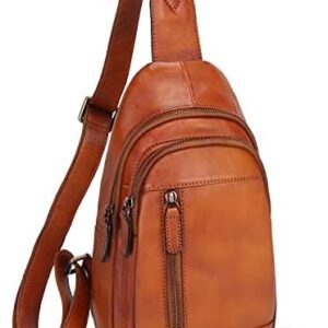 Genuine Leather Sling Bag for Chest Shoulder Crossbody Casual Daypack Vintage Handmade Hiking Backpack