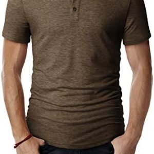 H2H Mens Casual Premium Slim Fit Henley T-Shirts Short Sleeve Lightweight