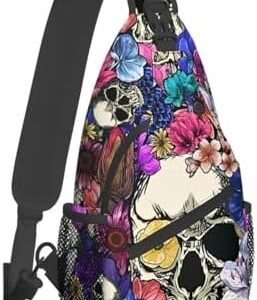 Hiking Skull Crossbody Sling Backpack Sling Bag for Men Women Bicycle Jogging Hiking Backpack Crossbody Shoulder Bag Chest Bag