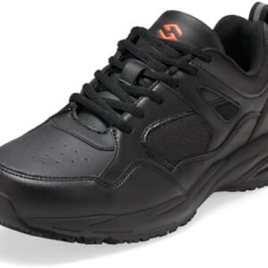 HISEA Slip Resistant Shoes for Men, Lightweight Breathable Non Slip Work Shoes, Water and Oil Resistant, Casual Lace Up Work Sneakers for Chef Kitchen Restaurant