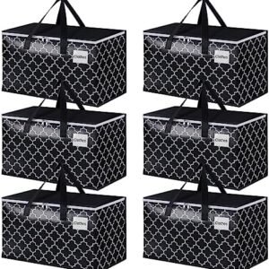 HomeHacks Storage Bags, Heavy Duty Moving Bags, Moving Boxes with Tag Pockets, Zippers & Carrying Handles, Collapsible Storage Totes for Storing, Camping, Packing & Moving Supplies, Black 88L, 6 Pack