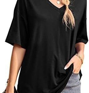 Iandroiy Womens Short Sleeve Tops Dolman V Neck T-Shirts Summer Casual Tunic Tops