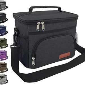 Insulated Lunch Bag for Women/Men – Reusable Lunch Box for Office Picnic Hiking Beach – Leakproof Cooler Tote Bag Organizer with Adjustable Shoulder Strap for Adults – Black