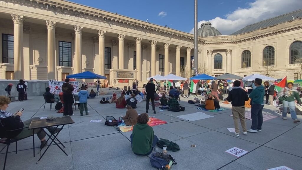 In a statement to FOX61 on Saturday, a Yale University spokesperson confirmed that approximately 400 people gathered in the plaza on Friday to protest and support Yale University’s divestment from military weapons manufacturing companies. Some people announced their intention to stay overnight and continue occupying the plaza until the university withdraws from such businesses, a spokesperson said.