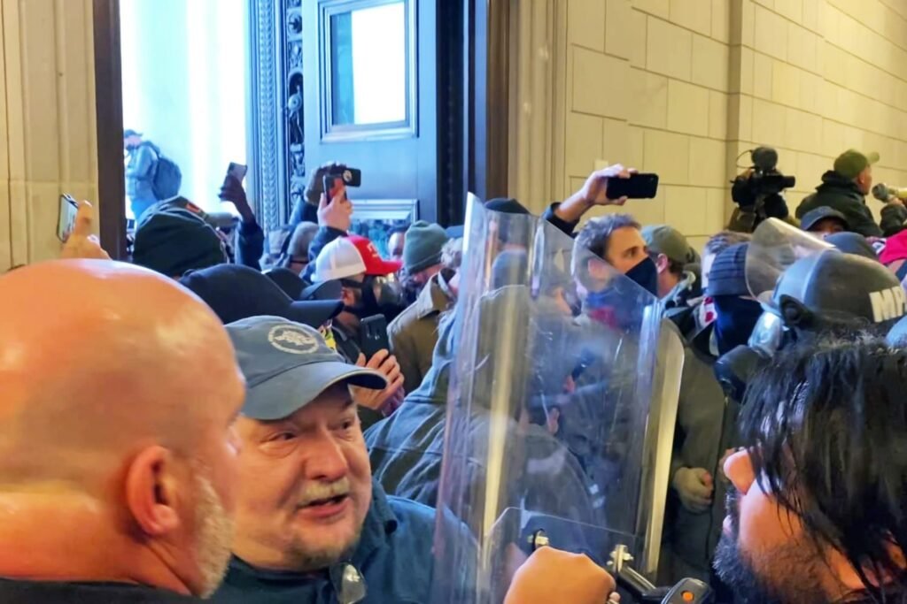 He and other rioters then fell to the ground, and after other rioters picked him up, he tried to identify himself to officers guarding the Capitol as a police officer, videos played as evidence in other trials of the Jan. 6 attack showed.