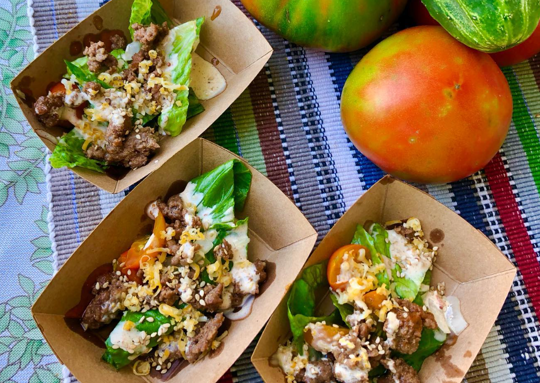 Recipes for Cheeseburger Salad and Tomato, Peach and Whipped Feta Salad can also be found on the Community Farmers Market Instagram.