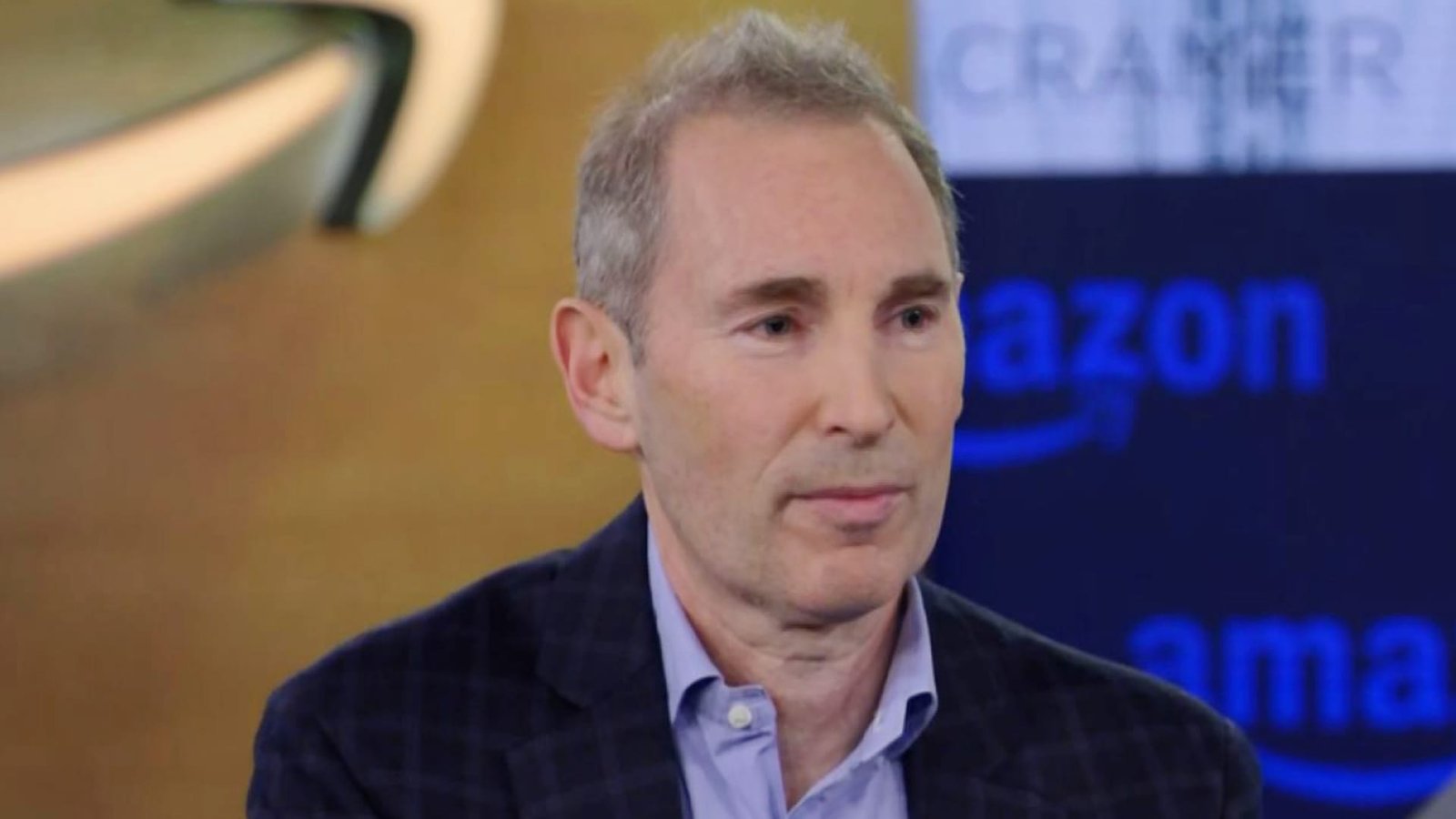 Amazon CEO Andy Jassy speaks with CNBC’s Jim Cramer on the Mad Money show on December 6, 2023 in Seattle, Washington.