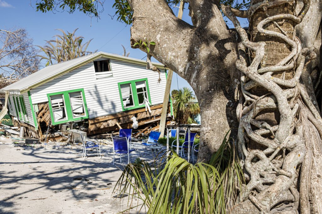 Estero Island, Fort Myers Beach, Florida, property damaged by Hurricane Ian in 2022. Most of Florida’s small insurance companies are too financially weak to comply with federal guidelines, a recent study found.
